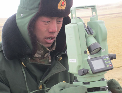 青藏聯網工程建設中,武警水電部隊使用公司控股子公司生產的“一光”牌電子經緯儀觀測冷土施工基礎沉降數據(附圖)。