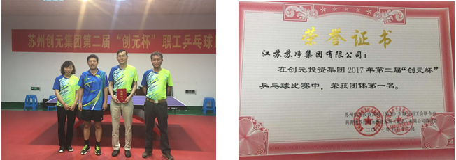 近(jin)日,由創元投資集團(tuan)工聯會、團(tuan)委聯合舉(ju)辦的2017年第二屆“創元杯”乒乓(pang)球(qiu)比賽(sai)(sai)圓滿結束。比賽(sai)(sai)共(gong)有(you)24支代表隊120名選手參加,公司全資子公司江蘇蘇凈參加了此次比賽(sai)(sai),經過緊張激烈的角逐,最終獲(huo)得了此次比賽(sai)(sai)的冠(guan)軍(jun)。