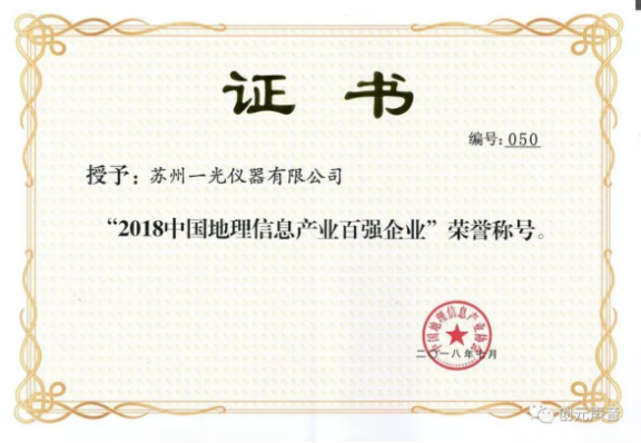 近期,2018中國地理信息產業大會在海南海口召開。會上,公司控股子公司蘇州一光被授予“2018中國地理信息產業百強企業”榮譽稱號。 蘇州一光提供 2018年8月10日